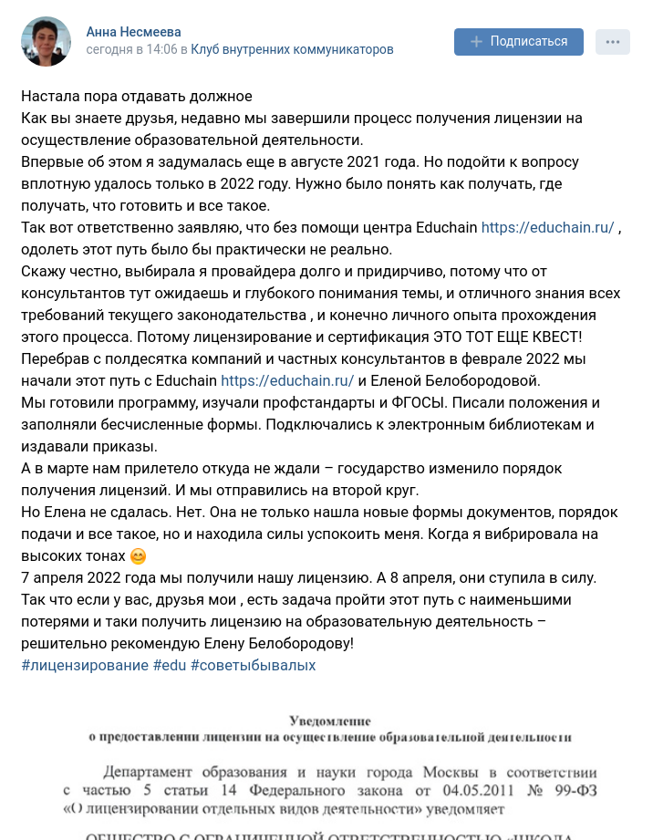 Первое обращение в Educhain прошло в формате индивидуальной консультации: