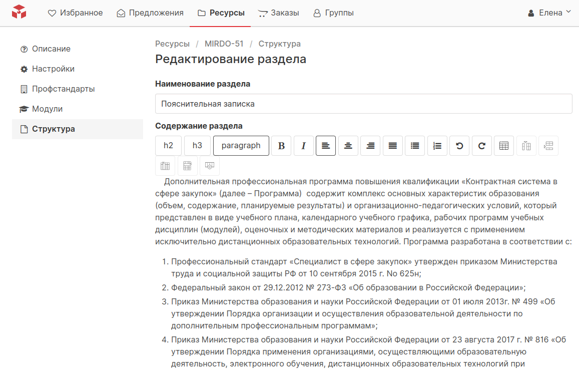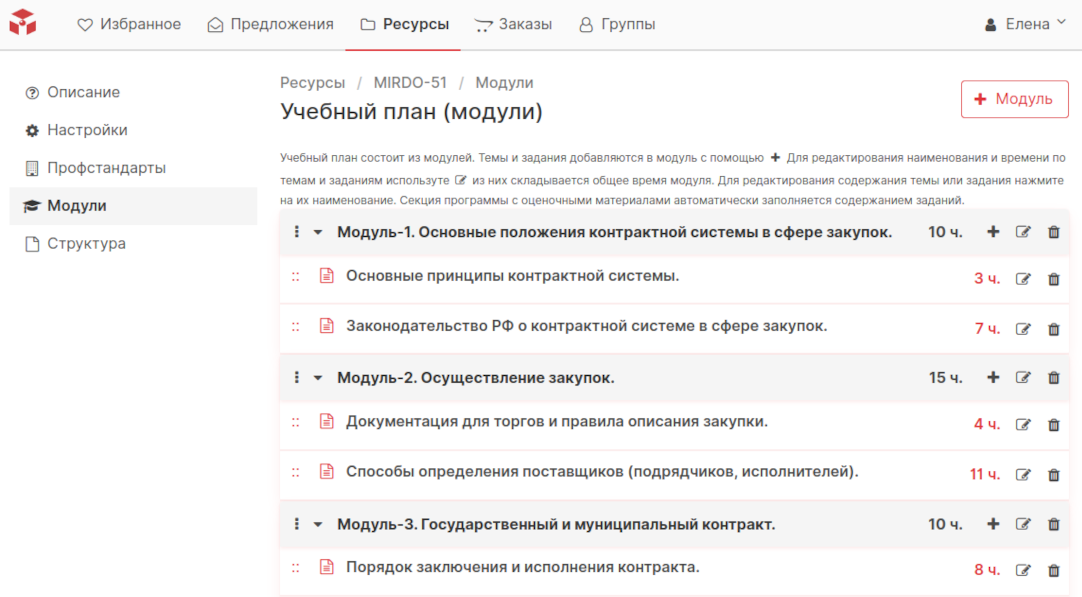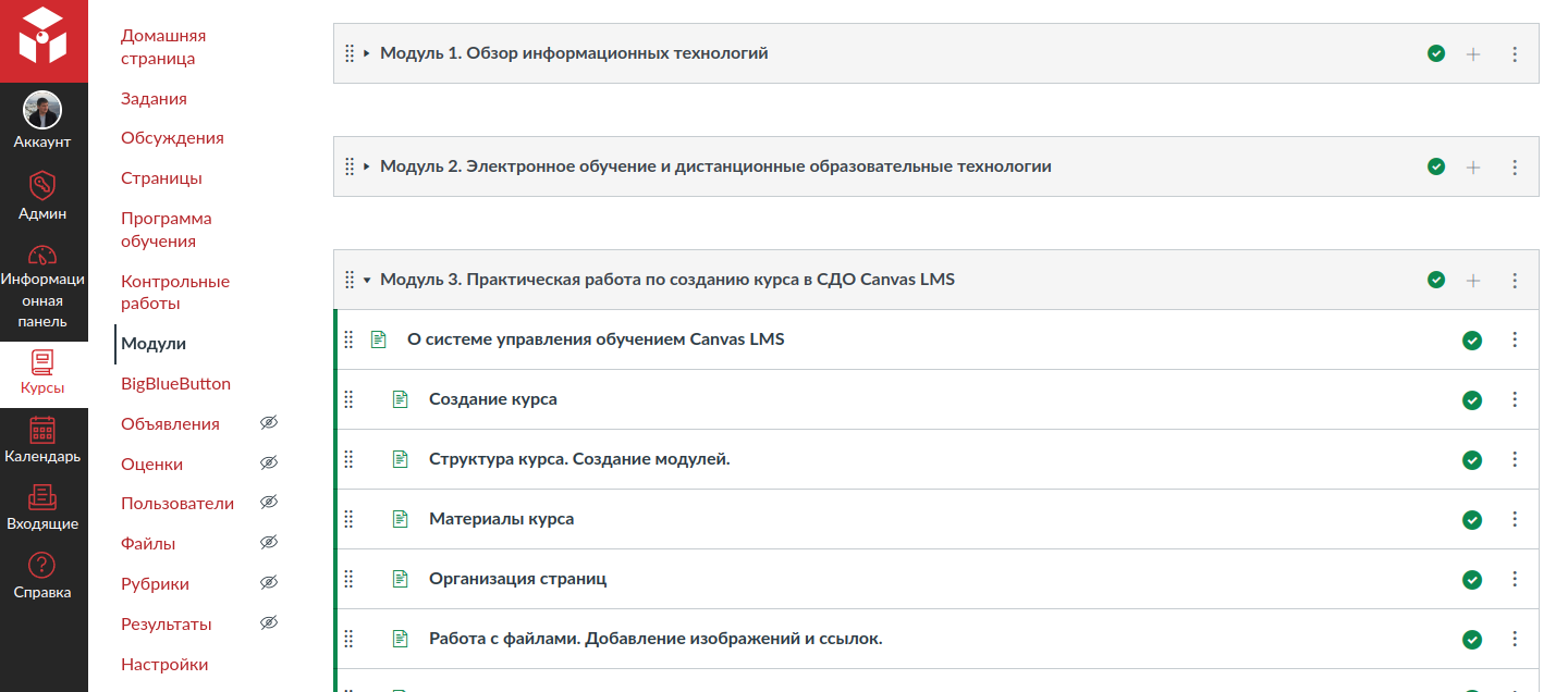 Модули. Календари. Расписания. Тесты. Рабочая программа. Аналитика.