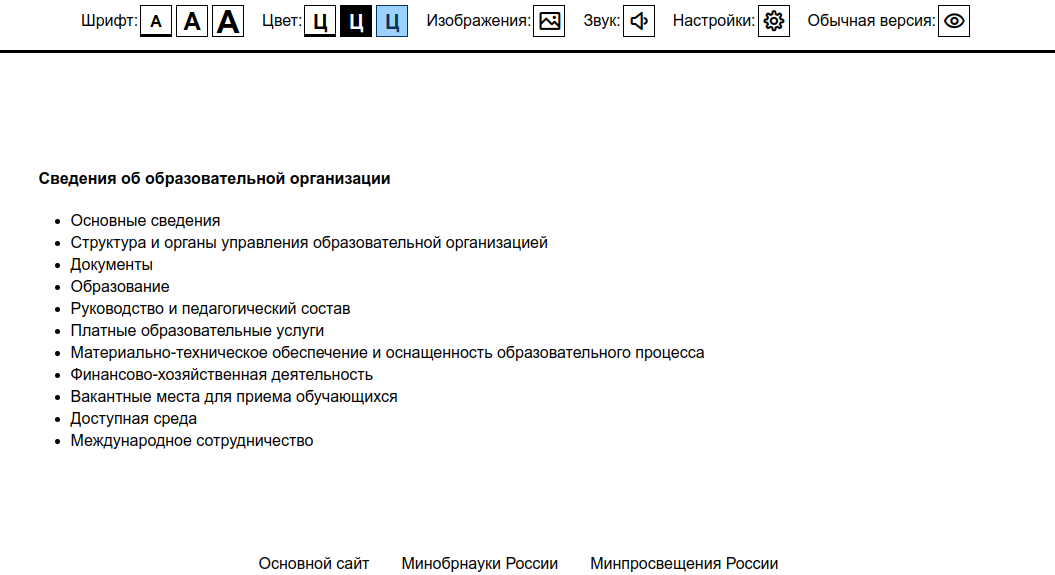 Раздел сайта Сведения об образовательной организации поставляется