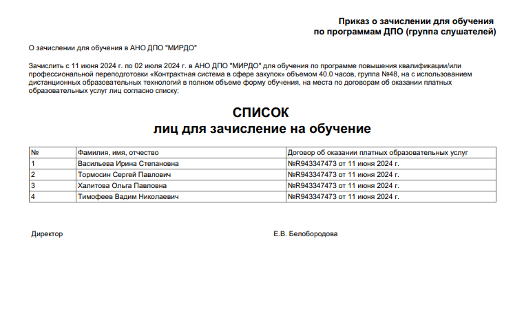 Система автоматически формирует все необходимые приказы, справки и