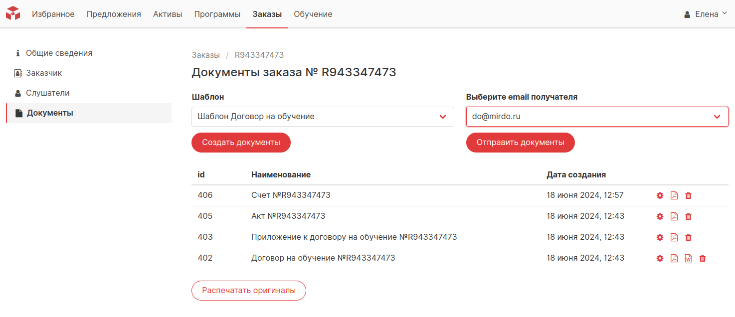 (подключения к LMS, создания приказов, печати документов об