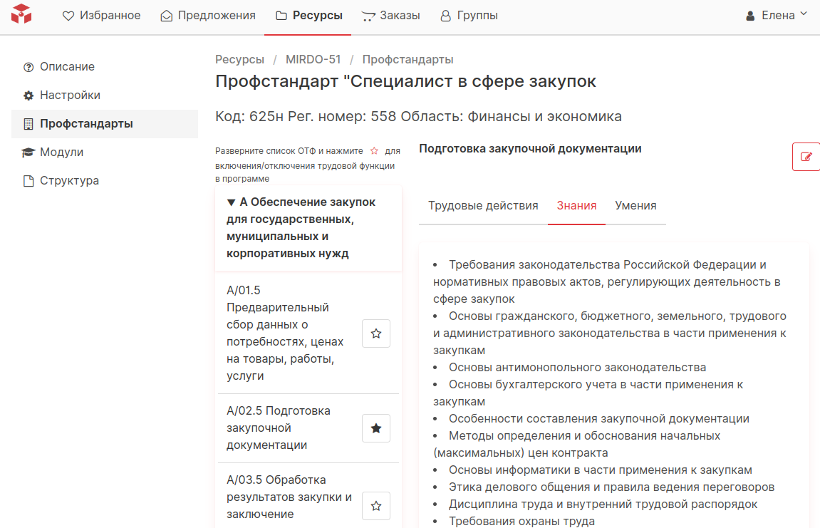 Поиск, фильтрация профстандартов из справочника Конструктора для